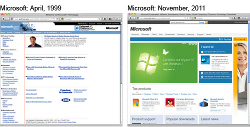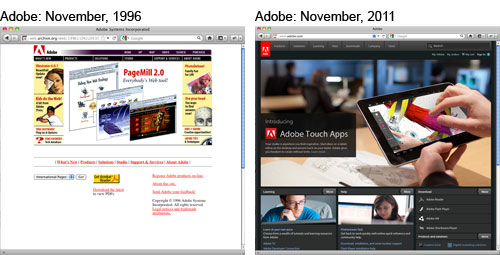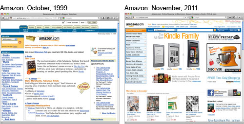 The Internet archive resource, Wayback Machine, is one of our favorite online tools to see how early stages of the Internet have evolved into what they are today. Not only have there been technological advancements in the way websites are programmed, but the actual content and advertisements also speak to us in a way that they never did before (want a new iPad or Kindle anyone?). Here’s just a small compilation of popular before and after homepages we found on Wayback Machine—some spanning back to as far as 1996. As a visual and marketing communications company, the gang here at Street Level Studio can appreciate just how far we’ve come throughout the years and look forward to seeing how the Internet and social media technology will continue to evolve into the future.