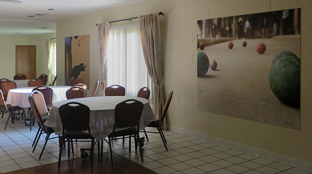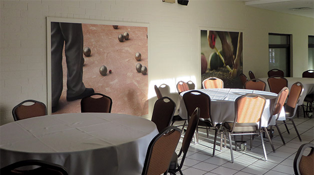 Street Level Studio was asked to help spruce up the recently built addition that holds banquets and events, and we were happy to be involved. Since bocce was the obvious theme, we searched for dramatic photos of the game in play. The result was four sizable murals that we had printed on huge sheets of plastic material and mounted to the walls. These will withstand all the partying guests can serve up and hopefully will add a little flavor of the sport for years to come.