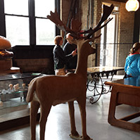 The three floors above the show vendors hold these treasures, an eclectic mix of the creepy, the beautiful, and the unwanted. Among the items our designer Laura noticed were card catalogs, auditorium chairs, doll heads, phone booths, enormous neon signs, mannequins, and laboratory equipment. Scattered over three floors, you could easily get lost in this hodgepodge of found items. Luckily, because the atrium provides plenty of natural sunlight, you won’t be lost for long, but you may emerge with a $6,000 gargoyle in tow.
